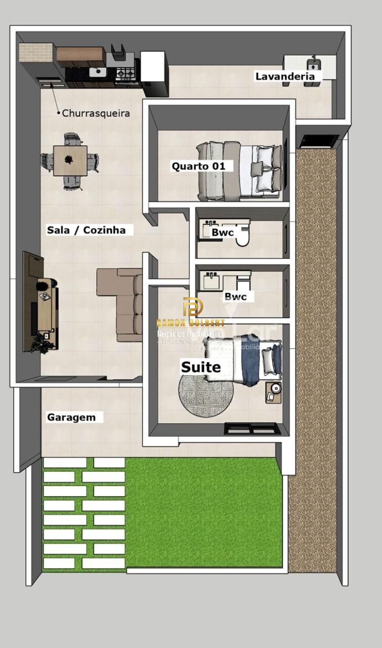 2 Dormitórios, sendo 1 suíteGaragens